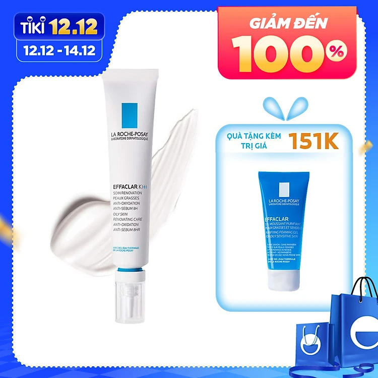 Bộ đôi kem dưỡng giúp giảm mụn đầu đen, giảm bóng nhờn La Roche-Posay Effaclar K+ 40ml và Gel rửa mặt dành cho da dầu mụn Effaclar Gel 50ml