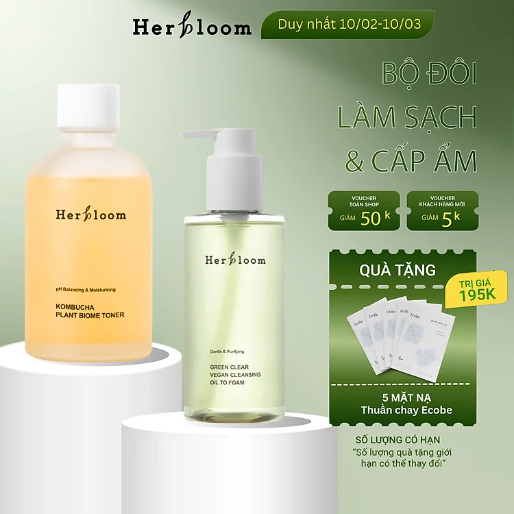 Bộ Đôi Làm Sạch & Cấp Ẩm Herbloom Dịu Nhẹ Cho Mọi Loại Da [Sữa Rửa Mặt 200ml + Toner 150ml]