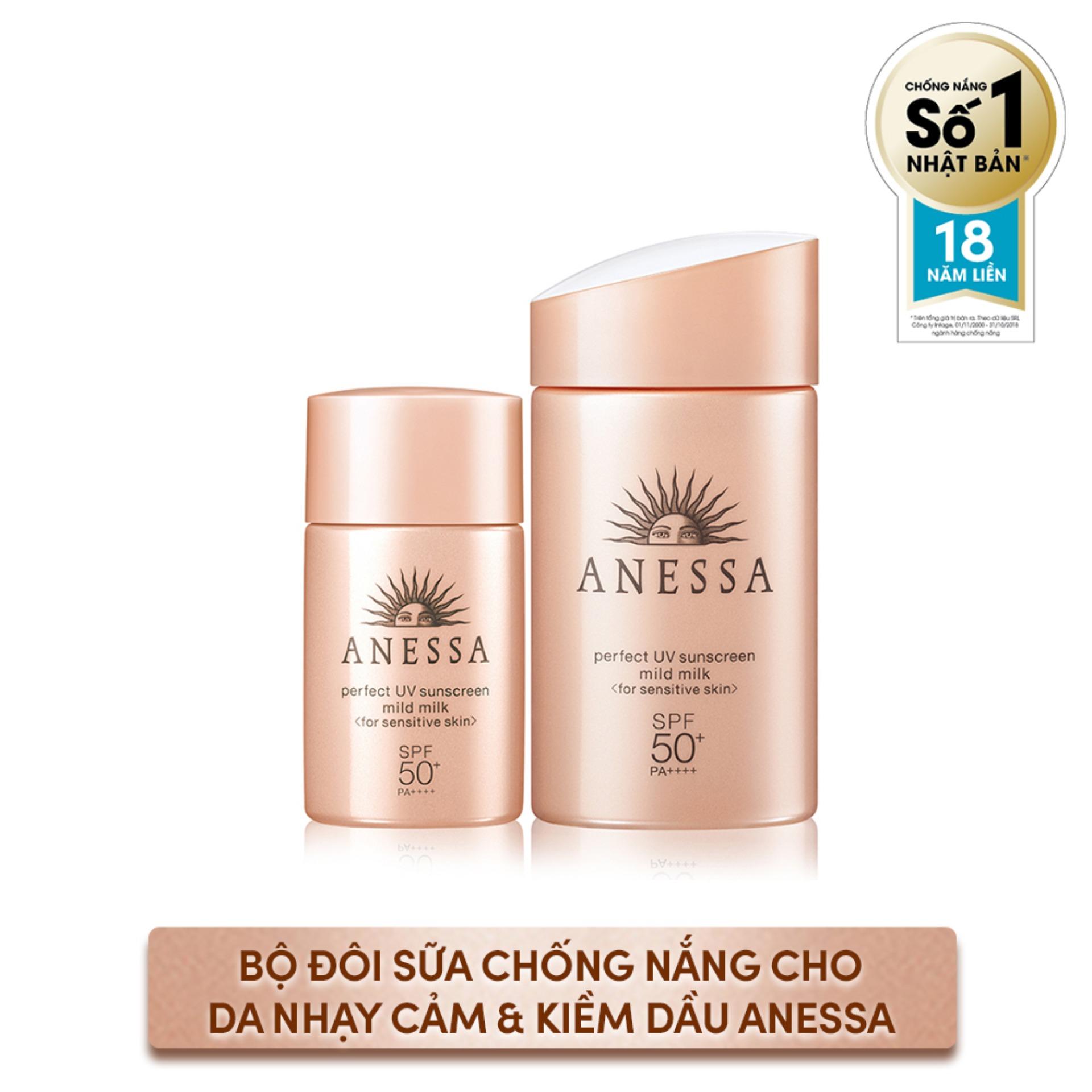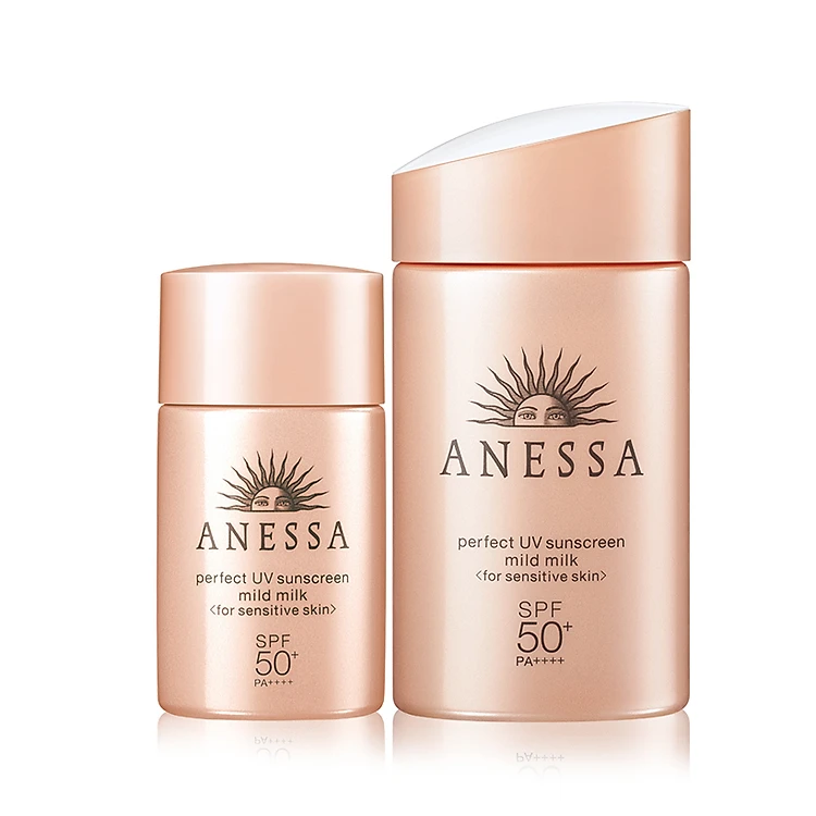 Sữa chống nắng dịu nhẹ cho da nhạy cảm Anessa Perfect UV Sunscreen Mild Milk - SPF50+, PA++++ giúp dưỡng da và bảo vệ da tối đa với thành phần tiêu chuẩn 5 không, dịu nhẹ và an toàn với làn da nhạy cảm nhất. Công nghệ Aqua Booster chống trôi trong nước và mồ hôi, bảo vệ toàn diện cho da kể cả khi bạn phải vận động, vui chơi nhiều ở ngoài trời và dưới nước. Sữa chống nắng rất thích hợp dùng cho cả mẹ và bé.