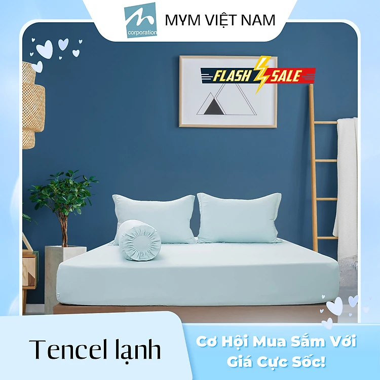 Bộ Drap, áo gối MYM chất liệu vải Tencel Lạnh Cao Cấp đủ kích thước 1m6, 1m8 Không kèm mền
