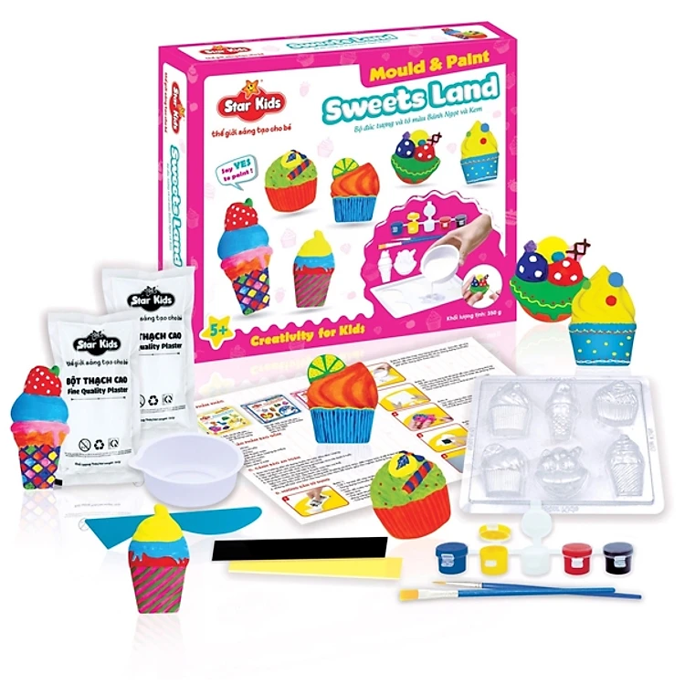 Bánh ngọt và kem, nghe thôi đã thấy ngọt ngào rồi. Điểm đặc biệt của sản phẩm này là bé có thể tự tay làm nên 1 món đồ chơi hoàn chỉnh từ việc đổ bột vào khuôn để tạo hình cho đến điểm tô màu sắc cho chúng trở nên xinh đẹp.
