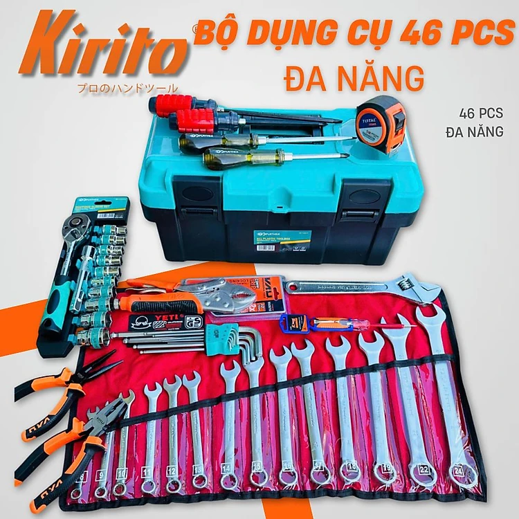 Bộ dụng cụ 46 món đồ sửa chữa xe máy, máy móc: hộp đựng đồ, cle, mỏ lết, lục giác, tuýp, tô vít.GF46