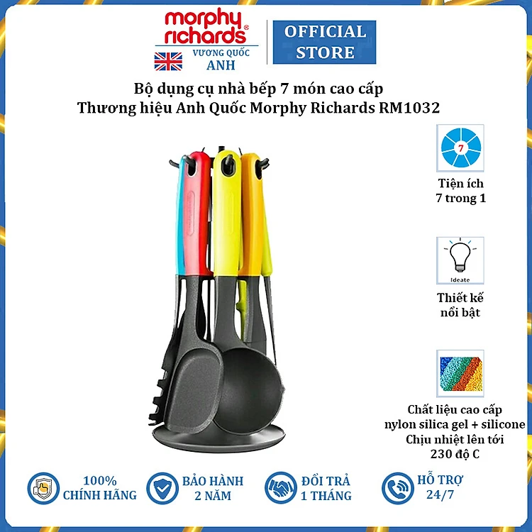 Bộ dụng cụ nhà bếp 7 món cao cấp thương hiệu Morphy Richards RM1032 - Chất liệu siêu bền chịu nhiệt độ cao - HÀNG NHẬP KHẨU