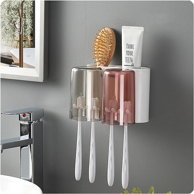 Bộ Dụng Cụ Nhả Kem Đánh Răng Tự Động 2/3/4 Cốc Và Giá Treo Bàn Chải Đa Năng - Chất Liệu ABS Cao Cấp - Hàng Chính Hãng MINIIN