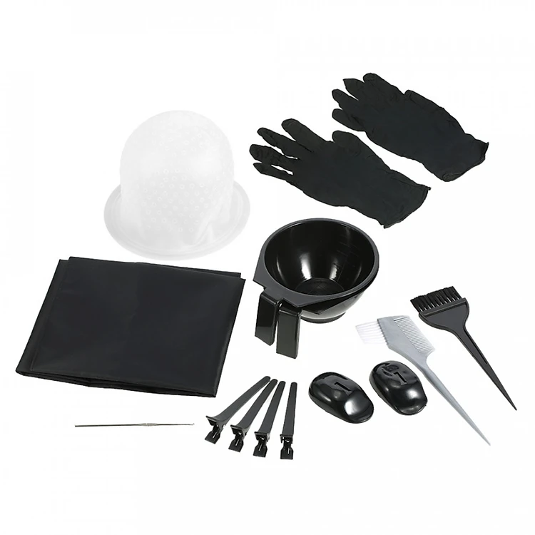 [Sufficient] Includes 2 dyeing bowls, 2 dyeing brushes, a pair of gloves, a pair of ear covers, an apron, a hair dyeing cap, a hook and some hair clamps.