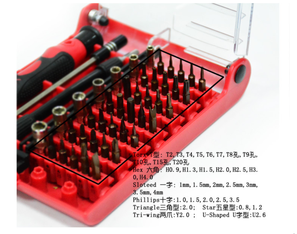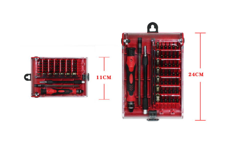Bộ dụng cụ với nhiều đầu vít khác nhau giúp cho công việc sửa chữa lắp đặt máy móc trong gia đình của bạn trở nên dễ dàng hơn rất nhiều, đảm bảo mở được tất cả các linh kiện. 42 đầu vít được xếp trong hộp rất tiện dụng và khoa học, chỉ cần một thao tác đơn giản, bạn sẽ chọn được ngay đầu vít cần sử dụng. Bộ dụng cụ chắc chắn sẽ là dụng cụ hỗ trợ đắc lực phục vụ các công việc của bạn được nhanh chóng và hiệu quả hơn rất nhiều.