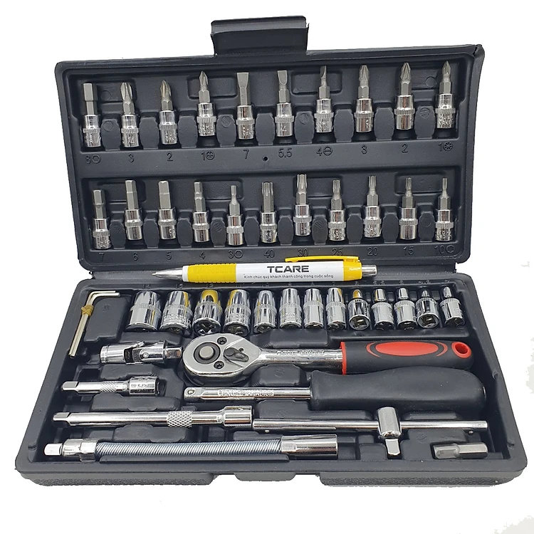 Bộ dụng cụ sửa chữa gia đình đa năng, sửa chữa xe máy, sửa chữa xe đạp Tcare 46PCS - Hàng Chính hãng làm bằng thép cao cấp không gỉ, chắc chắn, sáng bóng.