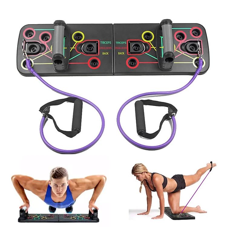Dụng cụ hỗ trợ chống đẩy , hít đất tập thể thao tại nhà kèm bàng chỉ dẫn theo màu sắc tập trung các nhóm cơ chính - Kèm dây đàn hồi tập đa năng