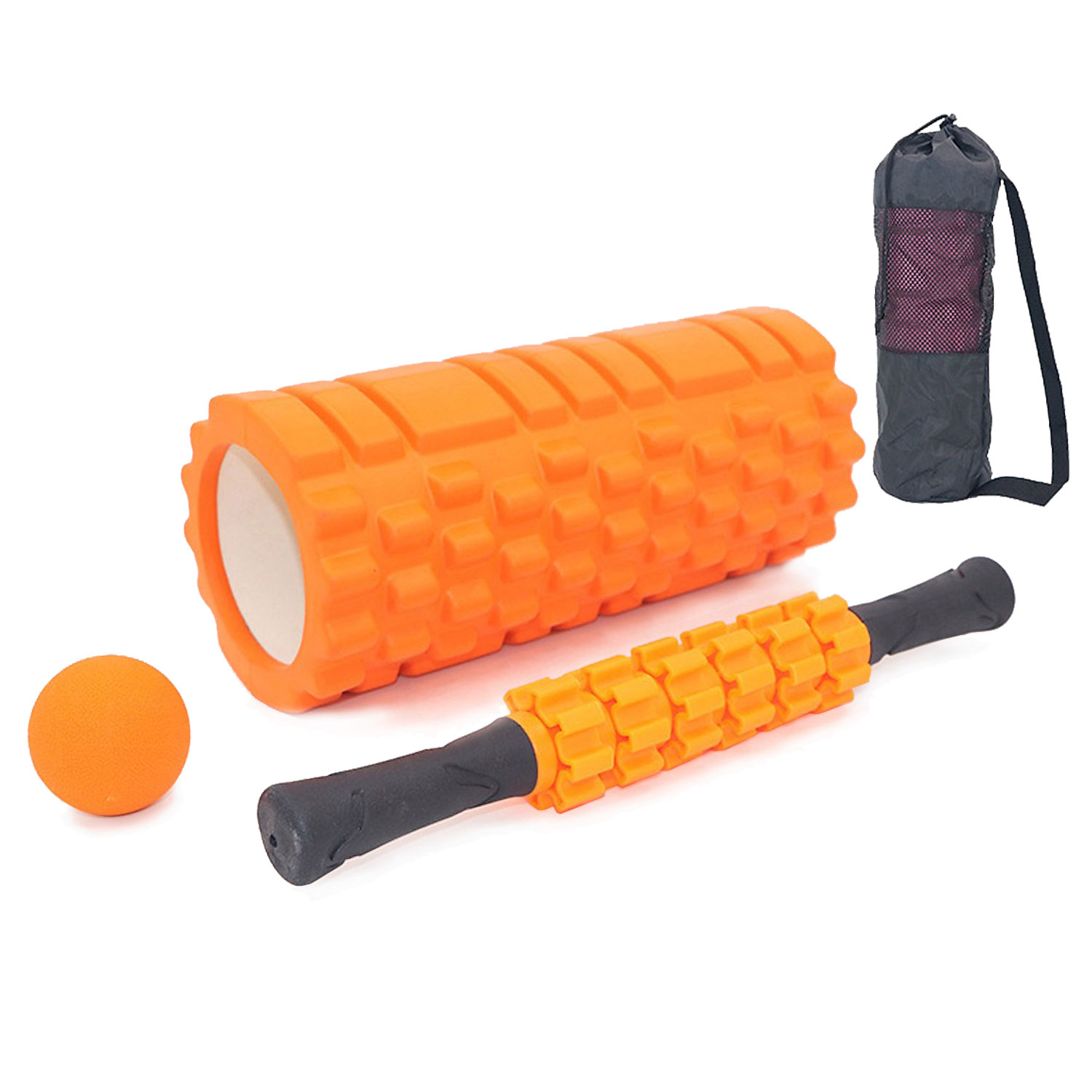 - Bộ sản phẩm gồm : con lăn 33x14 cmm, Thanh massage 6 bánh 38 ccm,bóng đơn 6 mm, túi đựng sản phẩm tiện lợi