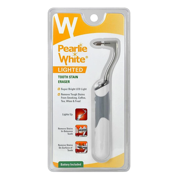 - Bộ Dụng Cụ Tẩy Vết Ố Răng Kỳ Diệu Pearlie White có thể làm biến mất những vết ố xỉn màu xấu xí ảnh hưởng đến răng từ đồ uống như cà phê, trà, rượu vang, cũng như các loại thực phẩm hàng ngày gây ra trên răng của Bạn. Kèm theo dụng cụ này là đèn siêu sáng giúp bạn kiểm tra xung quanh miệng một cách hiệu quả hơn, răng sẽ trắng hơn một cách kì diệu.