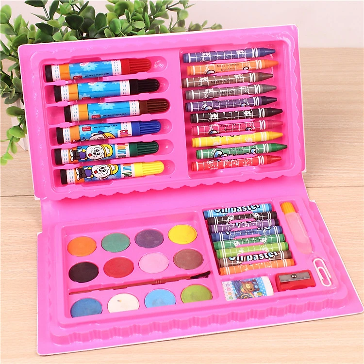 - Bộ màu vẽ 42 món gồm: bút lông, màu sáp, màu dầu, màu nước, cọ vẽ, tẩy… giúp cho bé thỏa sức sáng tạo và phát triển khiếu hội họa. Hộp nhựa bên ngoài được trang trí bởi màu sắc và hình ảnh ngộ nghĩnh, kích thước nhỏ gọn, dễ mang theo.
