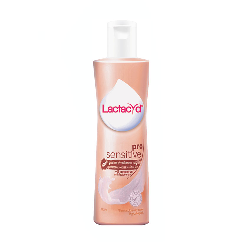 Công dụng: Lactacyd Pro Sensitive với Lactic Acid và Lactoserum, cùng độ pH cân bằng 3.5-4.7, giúp kháng khuẩn, giảm ngứa & ngăn ngừa viêm nhiễm vùng nhạy cảm.