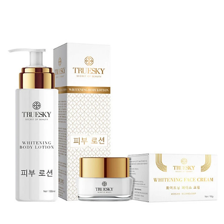 Bộ Dưỡng Trắng Da Mặt Và Body Truesky Gồm 1 Hộp Kem Dưỡng Trắng Da Mặt 15g & 1 Chai Kem Body 100ml - Mỹ Phẩm Chính Hãng