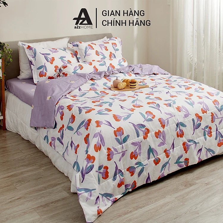 Bộ Ga Giường Mền Chần Bông 5 Món Sweet Flowers Mềm Mại 100% Cotton Tự Nhiên A2Z Home