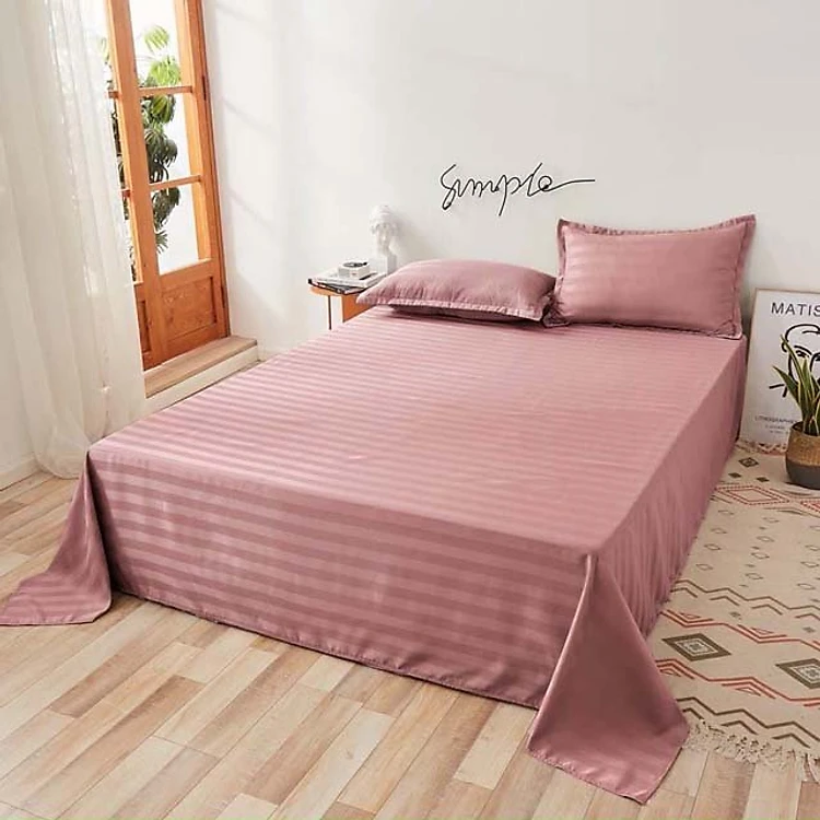 Bộ Ga Gối Cotton Kẻ 3F Lidaco Chuyên Dụng Cho Homestay, Khách Sạn - Hồng Phấn