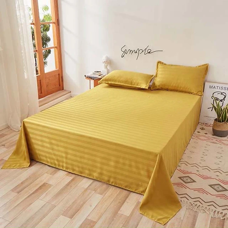 Bộ Ga Gối Cotton Kẻ 3F Lidaco Chuyên Dụng Cho Homestay, Khách Sạn - Vàng