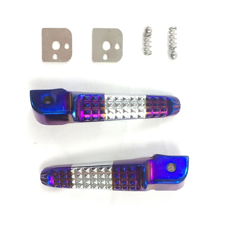 Với kết cấu như các phụ kiện gác chân truyền thống đi kèm theo xe nên rất dễ tháo lắp để thay thế. Nhưng với thiết kế táo bạo hơn thì đây sẽ là một sản phẩm máng đến cho bạn vài bất ngờ thú vị. Với lớp mạ tianium nhiều màu thì các biker cũng đã quá hiểu rỏ độ đẹp và sản chảnh của nó. Với các gam màu chuyển tông rất mượt như tím, trắng, xanh, vàng…