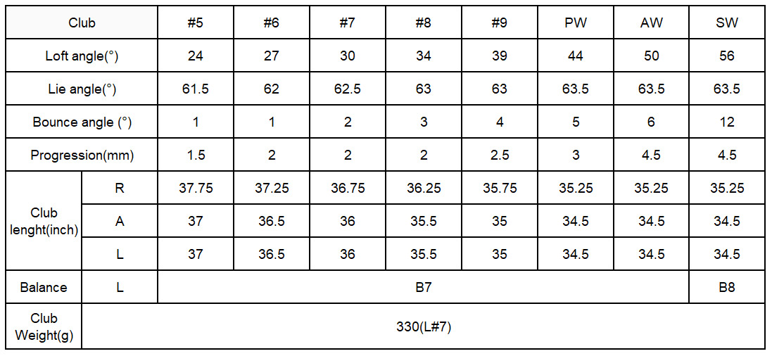- Mặt gậy chất liệu Titanium (Super-TIX 51AF), thân đầu gậy làm bằng thép không gỉ SUS630.