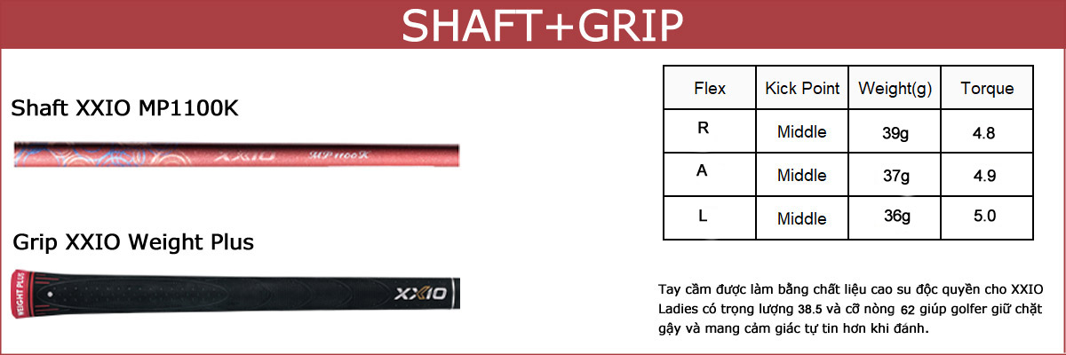 - Shaft MP1100K (shaft Korea) Flex L nặng 36g nhẹ, trợ lực tốt