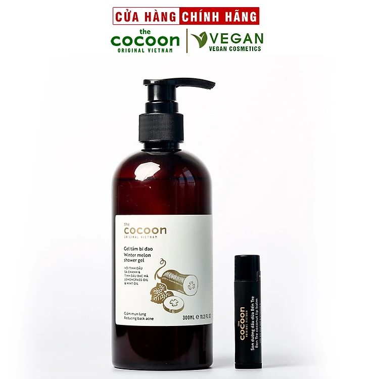 Bộ Gel tắm bí đao cocoon 310ml + Son dưỡng môi dầu dừa bến Tre 5g