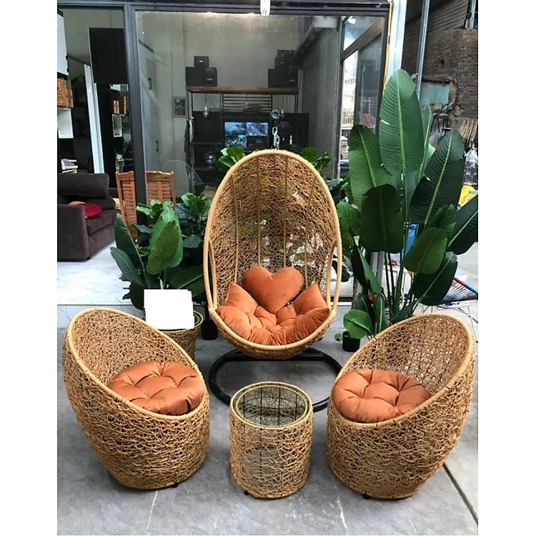 Bộ ghế xích đu trứng Đan rối vàng Mây XĐ 184 chất liệu khung sắt mây nhựa cao cấp juno sofa