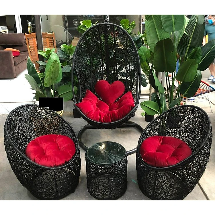 Bộ ghế xích đu trứng Đan rối XĐ 185 chất liệu khung sắt mây nhựa cao cấp juno sofa