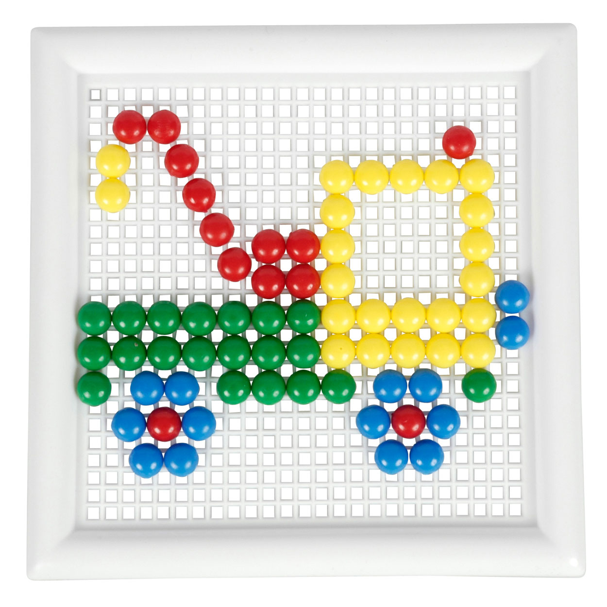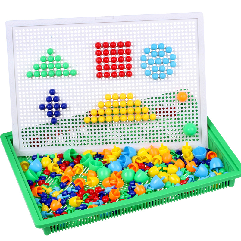 Bộ đồ chơi thông minh bao gồm 1 bảng nhựa đục lỗ (21x29cm) và nút nhựa hình cây nấm nhiều màu, nhiều kích cỡ để bé lắp vào bảng tạo thành nhiều hình thù theo ý thích. - Bé chỉ cần cắm đầu từng nút để ghép thành những hình thù có nhiều màu sắc khác nhau tùy trí tưởng tượng của con