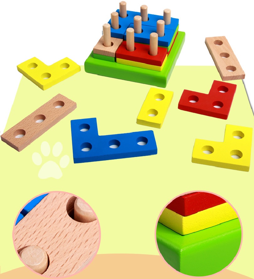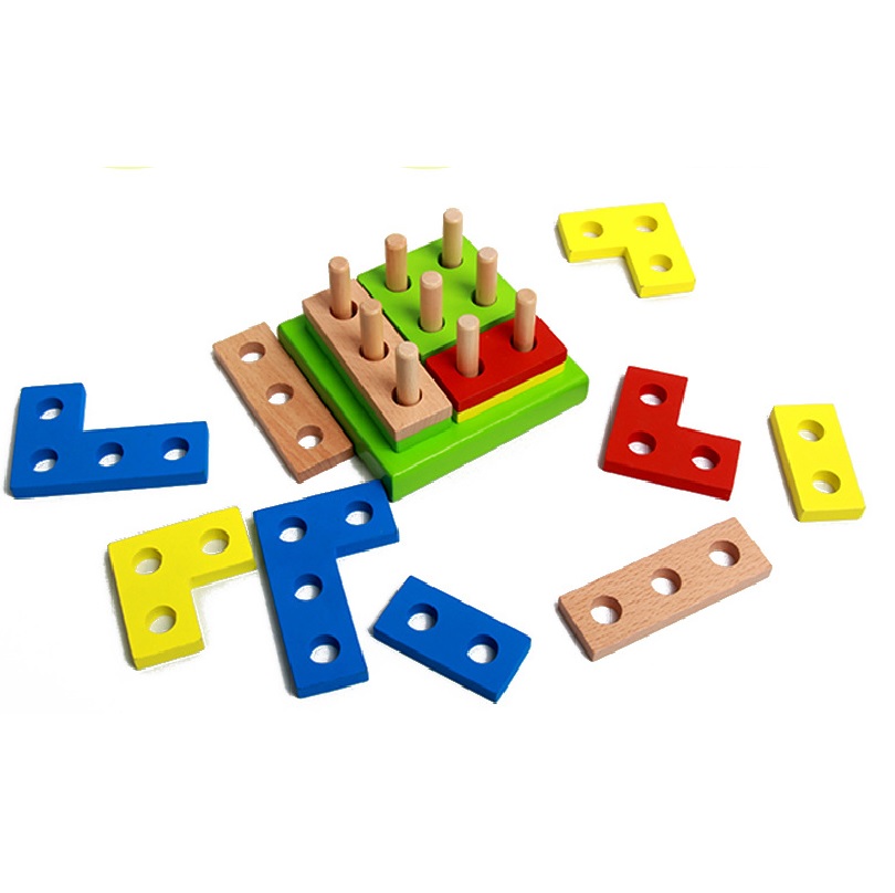 Bộ ghép hình vuông đồ chơi gỗ