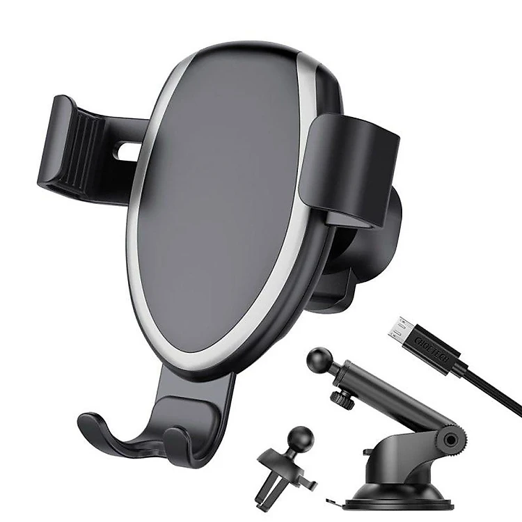 Bộ giá đỡ điện thoại Choetech T536 tích hợp sạc không dây dùng kẹp khe gió hoặc dán taplo trên ô tô (hàng chính hãng)