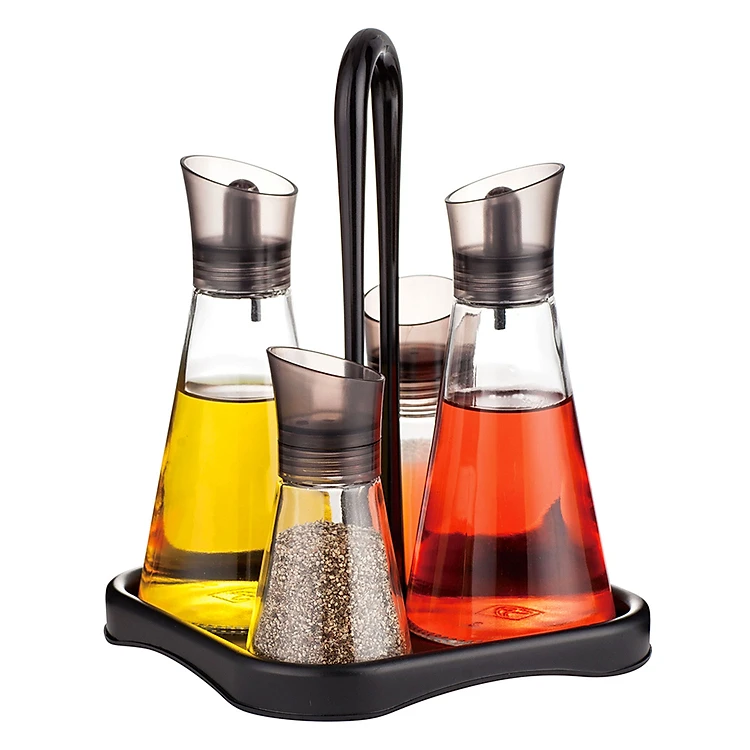 Bộ Gia Vị 4 Món Có Đế Xách Moriitalia 78572002 được làm từ thủy tinh thân thiện với môi trường và an toàn khi sử dụng. Sản phẩm có nắp đậy bằng nhựa trong và miếng đệm bằng silicone, giúp giữ chất lỏng trong bình như nước mắm, nước tương, dầu ăn, dầu mè, giấm... không nhỏ giọt ra ngoài. Bộ sản phẩm gồm 2 lọ gia vị đựng chất lỏng 260ml, 2 lọ gia vị nhỏ và 1 khay xách bằng nhựa.