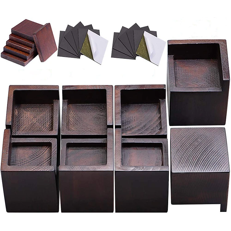 BỘ GỖ NÂNG CHÂN BÀN GHẾ TỦ GIƯỜNG NỘI THẤT - NÂNG CAO TỪ 6,7 cm ĐẾN 7,7 cm MÀU ĐEN (BỘ 8 CÁI)
