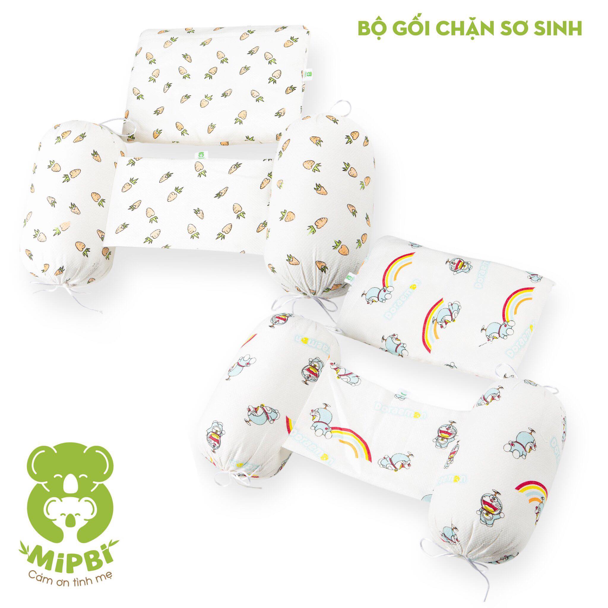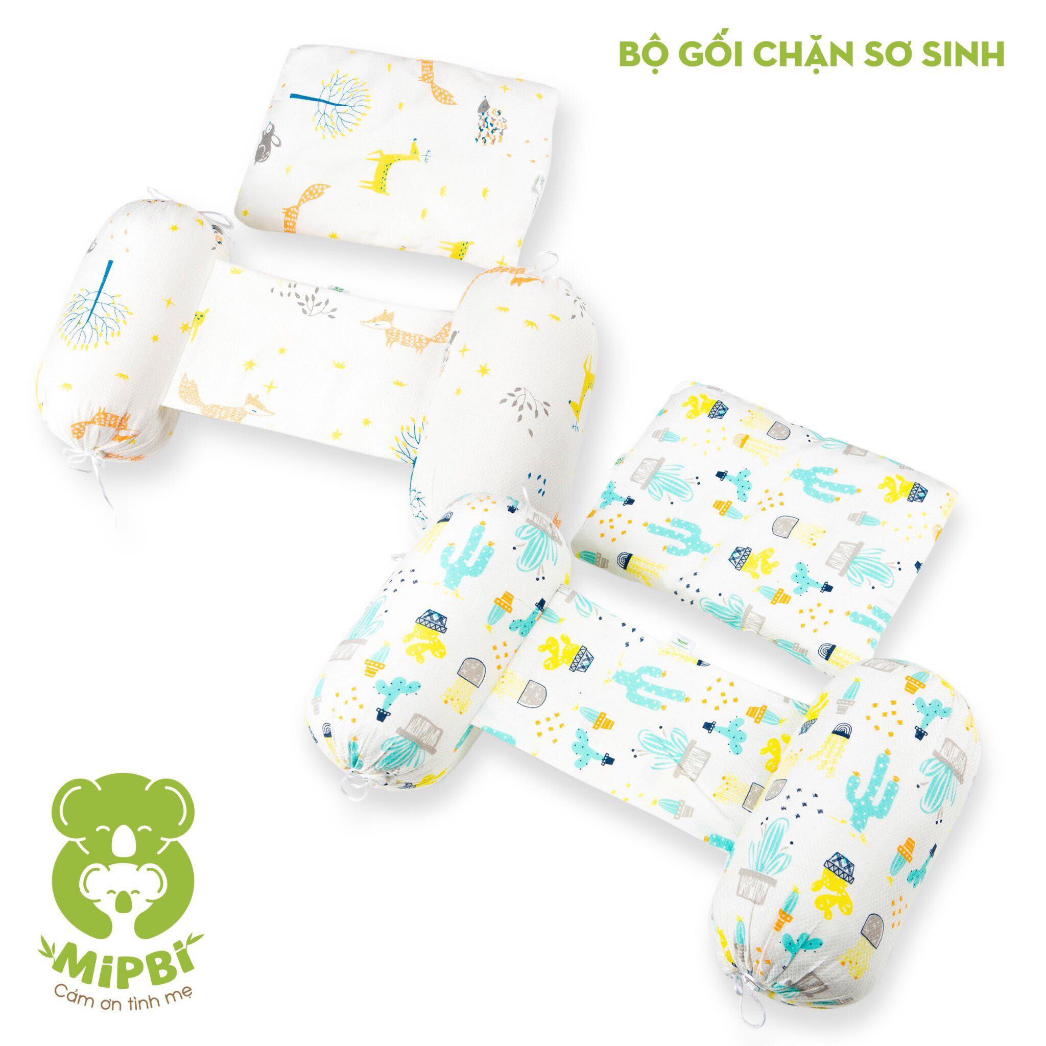 Bộ gối chặn sơ sinh cho bé Mipbi được làm bằng chất liệu 100 % cotton