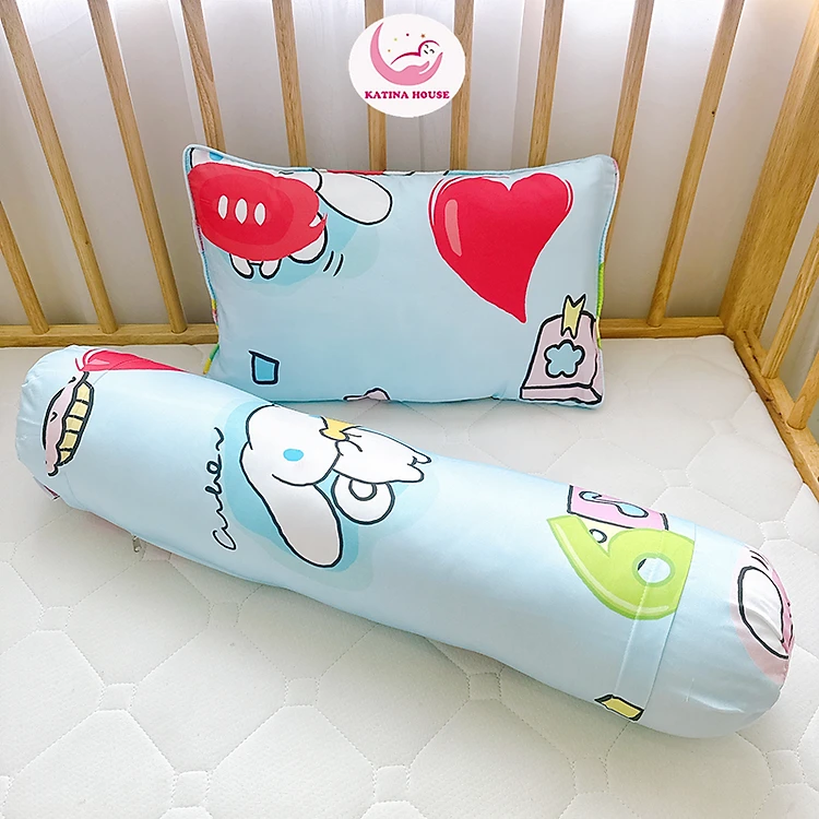 Bộ gối nằm, gối ôm Katina House cho bé 5-10t, gối gòn lông vũ nhân tạo, vải tencel mềm mịn thoáng mát
