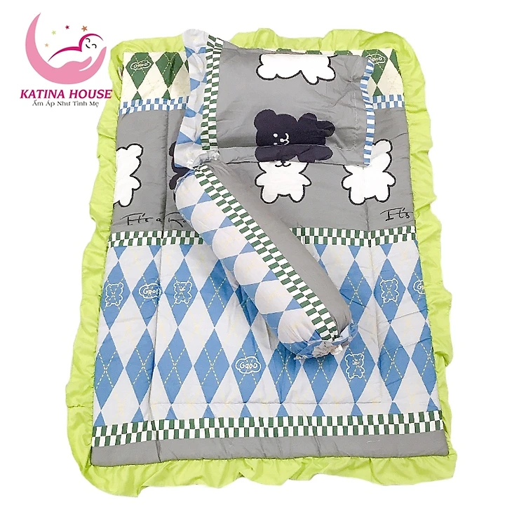 Bộ gối nệm cho bé 1-4 tuổi, chất vải Cotton thoáng mát, thấm hút tốt, nệm bèo đáng yêu