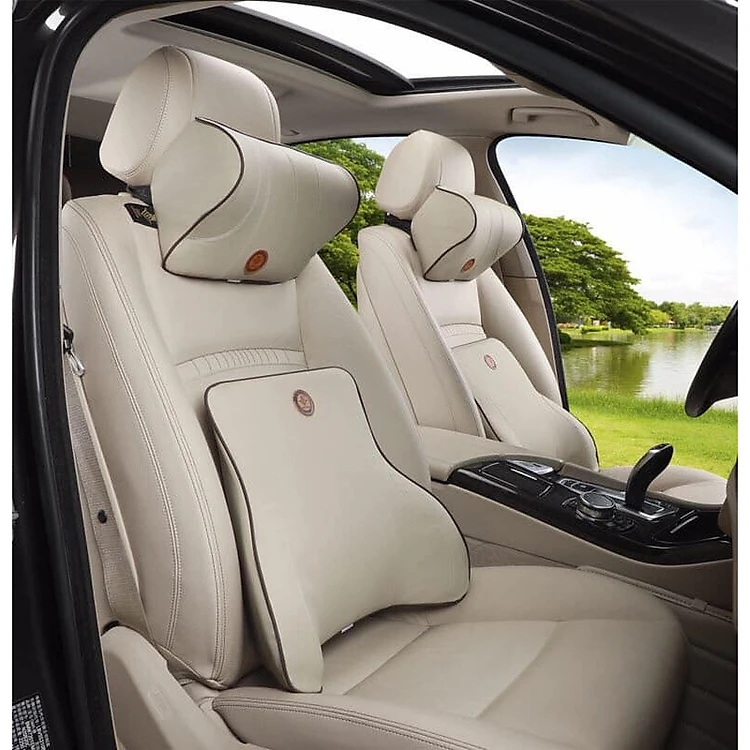 Bộ gối tựa cổ, tựa lưng dành cho ô tô, xe hơi cao su non cao cấp Xiongguan màu Kem - Hàng nhập khẩu