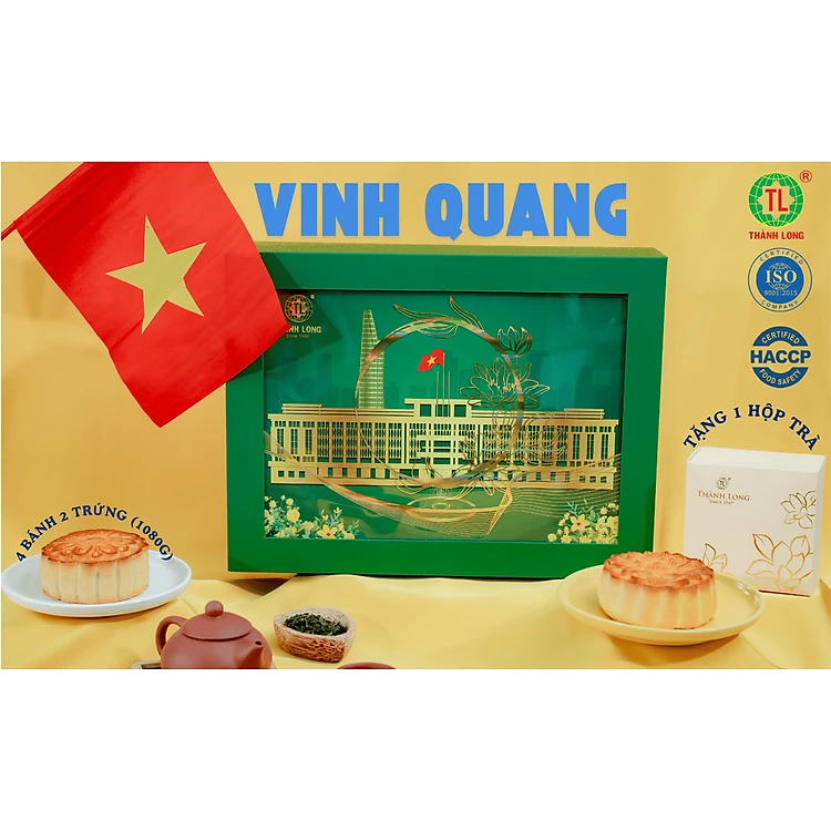 Bộ Hộp Bánh Trung Thu Vinh Quang - 4 bánh 2 trứng (270g) Thành Long - Tặng 1 hộp trà - Việt Nam