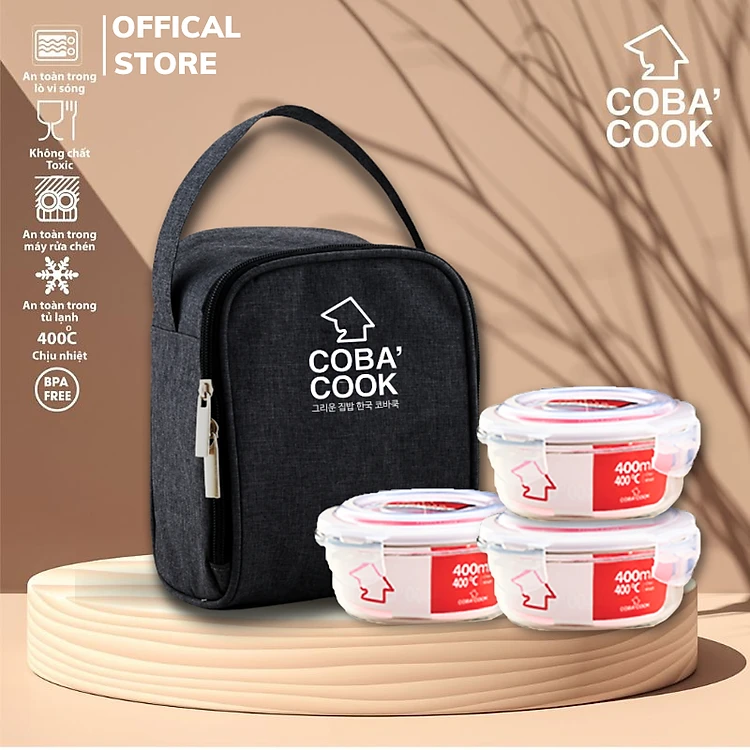 Bộ Hộp Đựng Cơm Thủy Tinh Chịu Nhiệt COBA'COOK Kèm Túi Giữ Nhiệt- CCR43BS