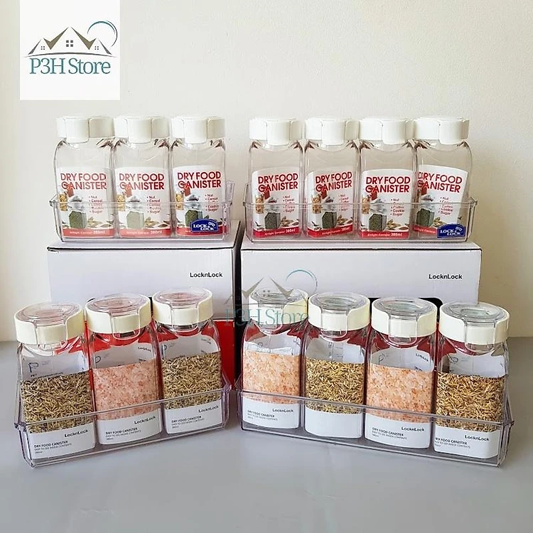 Bộ hộp đựng gia vị thực phẩm khô Lock&Lock kèm khay HTE500S3 HTE500S4