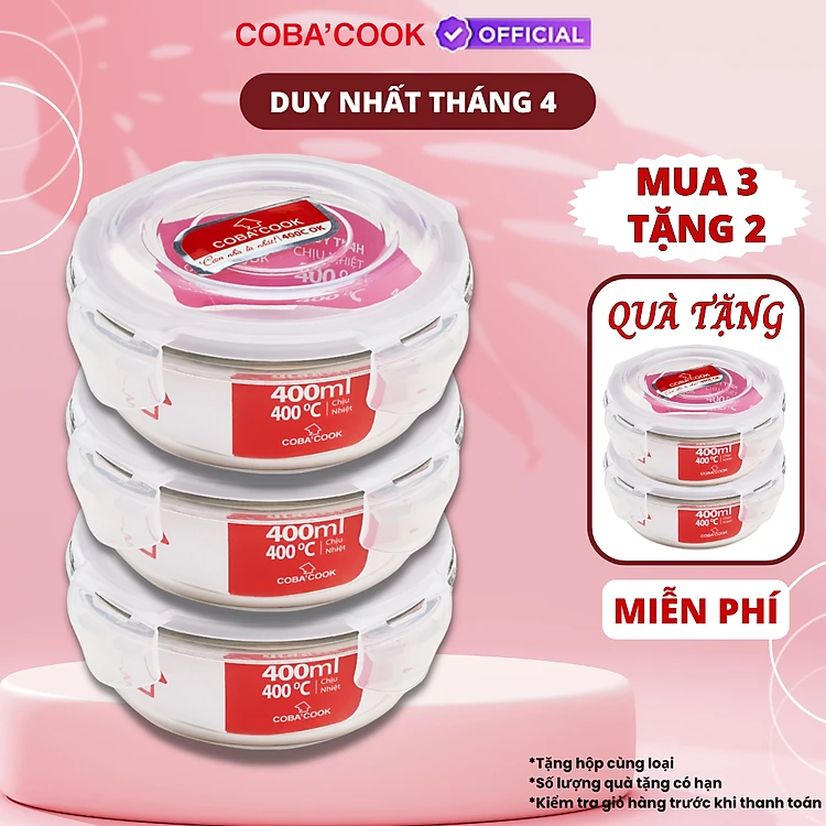 Bộ Hộp Đựng Thực Phẩm Bảo Quản Thức Ăn Thủy Tinh Chịu Nhiệt Mua 3 TẶNG 2- 400ml