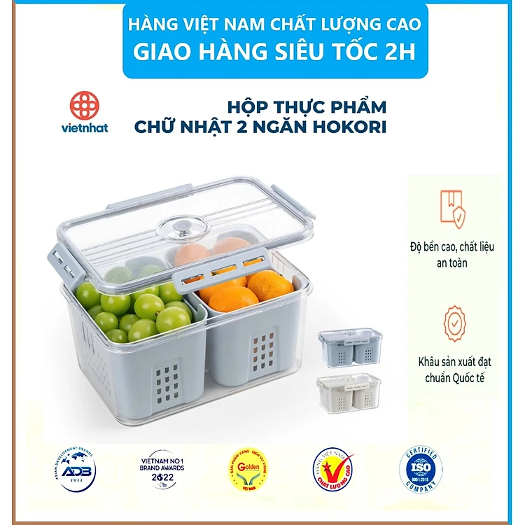 Bộ hộp rổ trong HOKORI nhựa VIỆT NHẬT cao cấp - 2 ngăn, 3 ngăn, tách nước - Thực phẩm tủ lạnh - Hàng Việt Nam