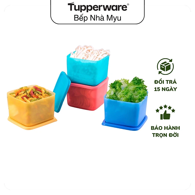 Bộ Hộp Tupperware Bảo Quản Thực Phẩm Ngăn Mát Medium Square Round 1L (04 Hộp)