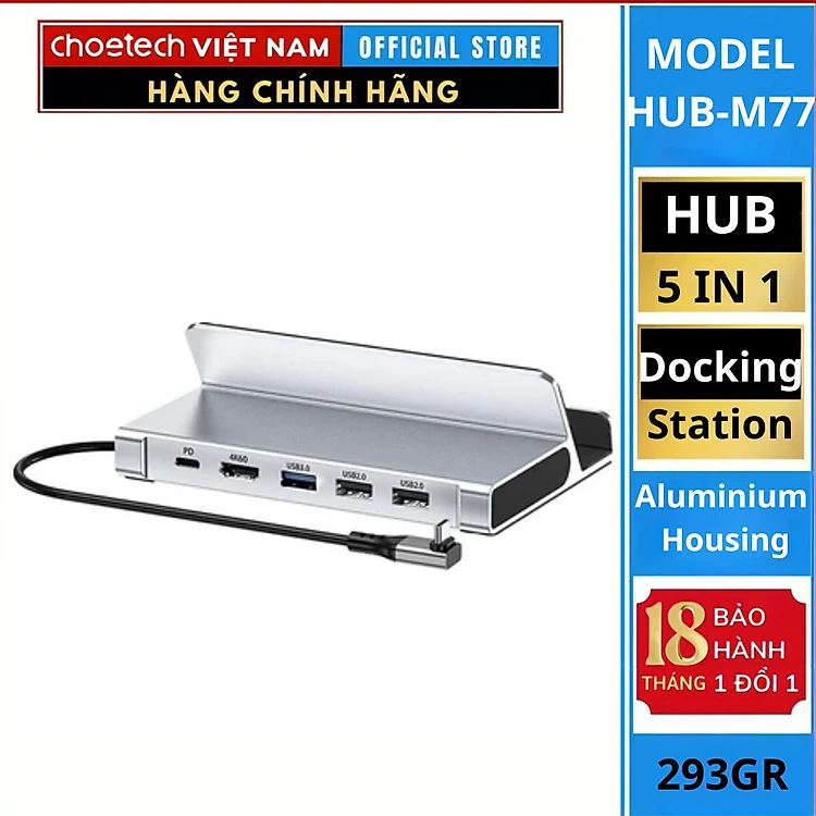 Bộ Hub chuyển đổi Choetech HUB-M77 5in1 Docking Station (HDMI 4K60Hz + USB*3 + PD100W)- Hàng chính hãng