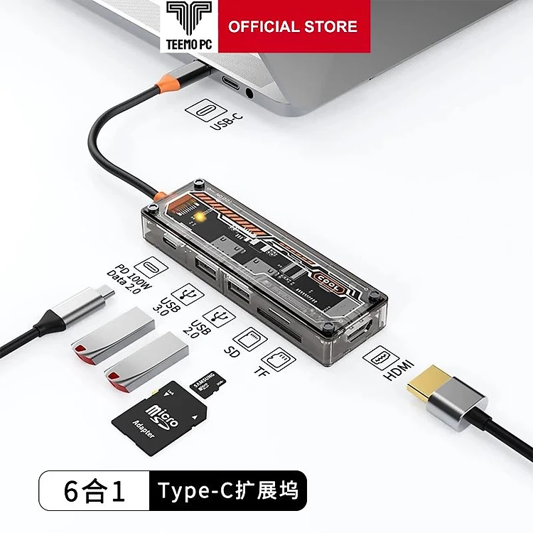 Bộ HUB TEEMO PC Chia 6 Cổng Trong Suốt USB Type C HDMI PD Dùng Cho Laptop Surface Macbook IPad Điện Thoại SW6H Hàng Chính Hãng