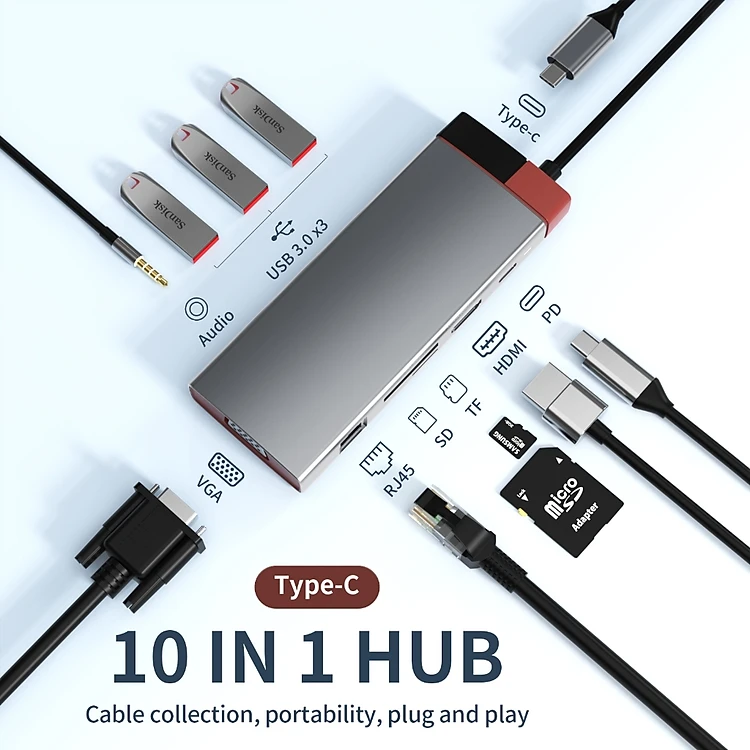 Bộ HUB TEEMO PC Gentlemen Chia 12 Cổng USB Type C To HDMI PD Dùng Cho Laptop Surface Macbook IPad Điện Thoại - Hàng Chính Hãng
