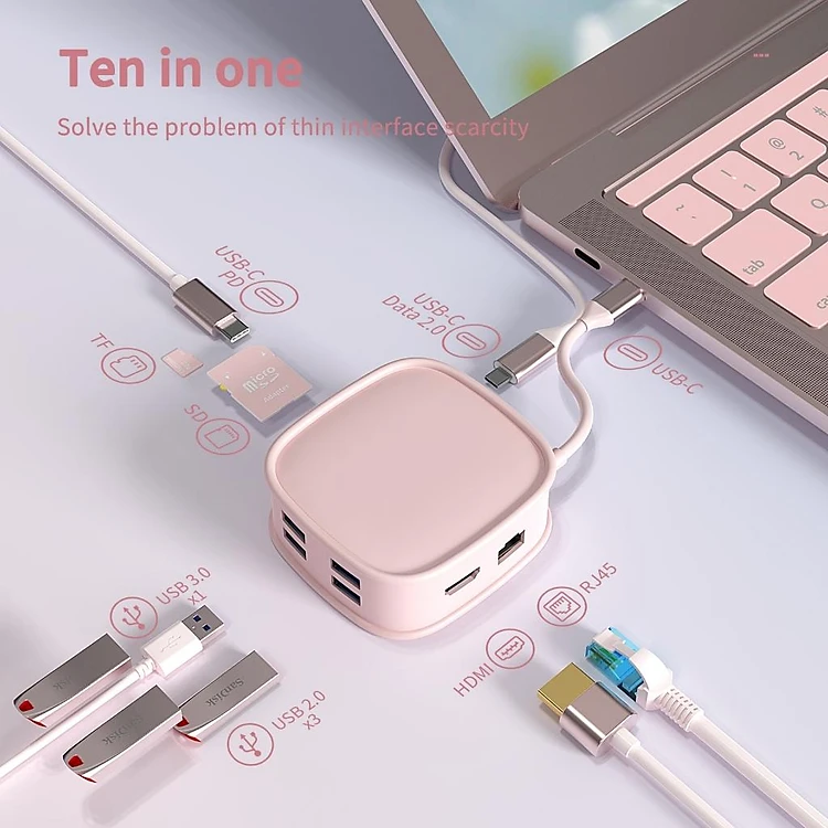 Bộ HUB TEEMO PC Túi Xách Chia 10 Cổng USB Type C To HDMI PD Dùng Cho Laptop Surface Macbook IPad Điện Thoại BS10H - Hàng Chính Hãng