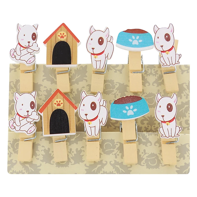 - Bộ Kẹp Ảnh Gỗ - Cún (10 Cái) sở hữu thiết kế nhỏ gọn, họa tiết đáng yêu, ngộ nghĩnh được gia công từ gỗ, tinh tế trong từng đường nét, chắc chắn và bền đẹp.