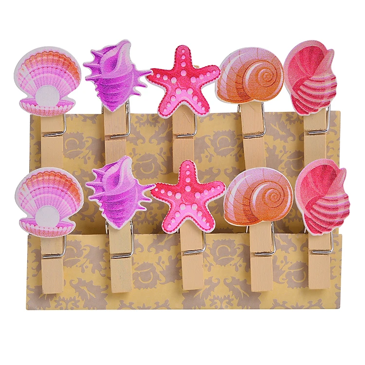 Bộ Kẹp Ảnh Gỗ - Vỏ Ốc (10 Cái)