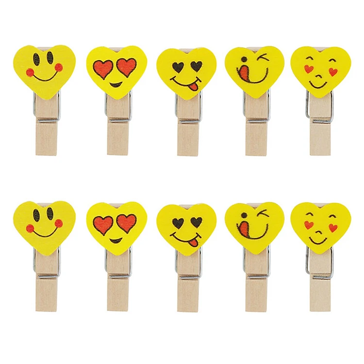 10 kẹp gỗ trái tim emoji + dây cói