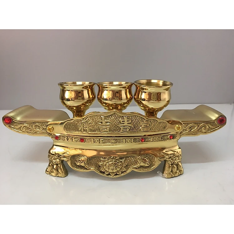 Đồ thờ cúng bằng đồng, Bộ khay 3 chén bằng đồng vàng - ly chén trơn - Đồng nguyên chất