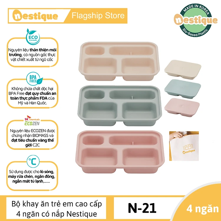 Bộ Khay Ăn Trẻ Em Nestique N-21 Cao Cấp 4 Ngăn Có Nắp